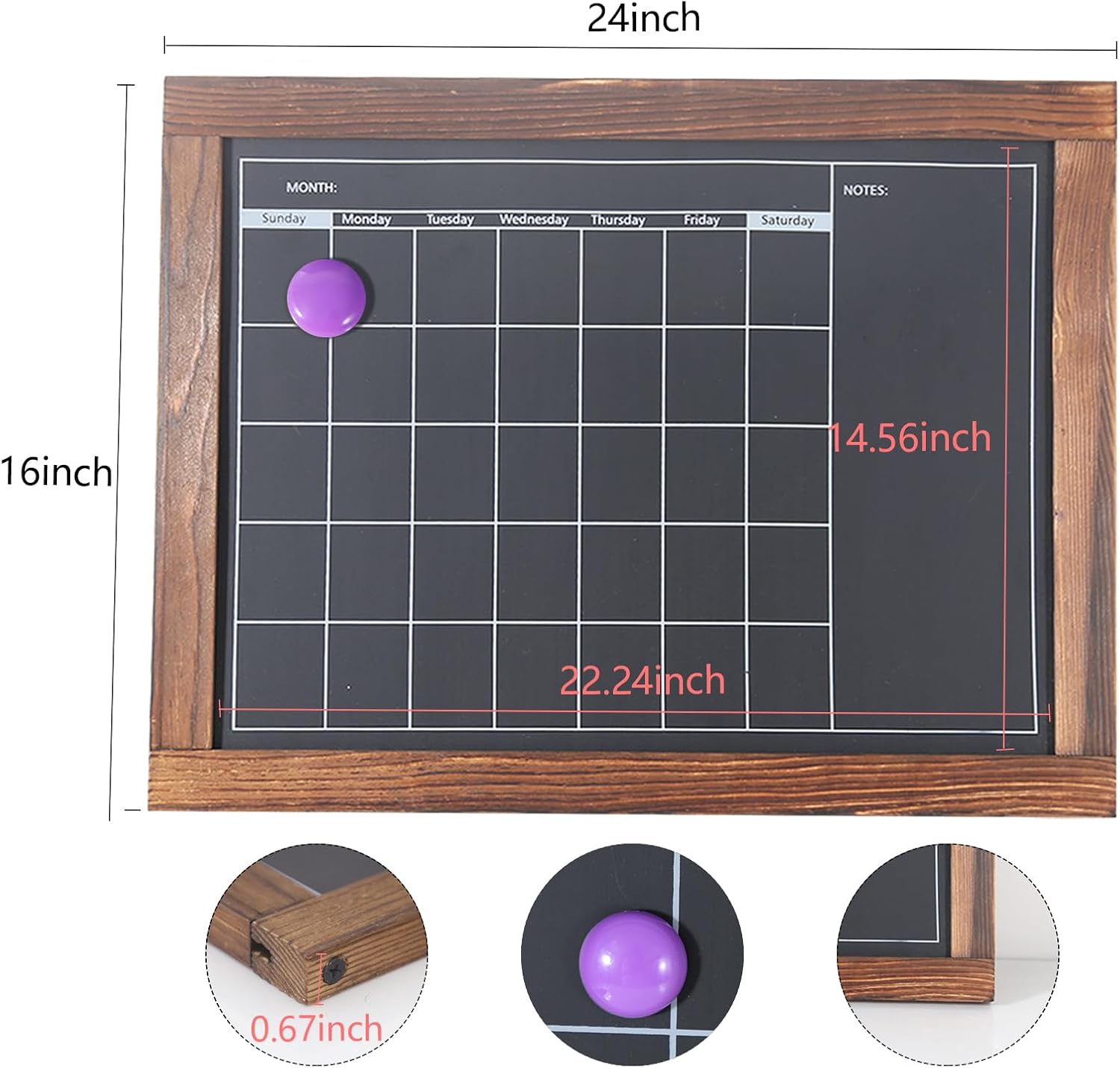 Wood Frame: Rustic style planning board/monthly calendar chalkboard, wood texture frame, smooth surface, durable without deformation.