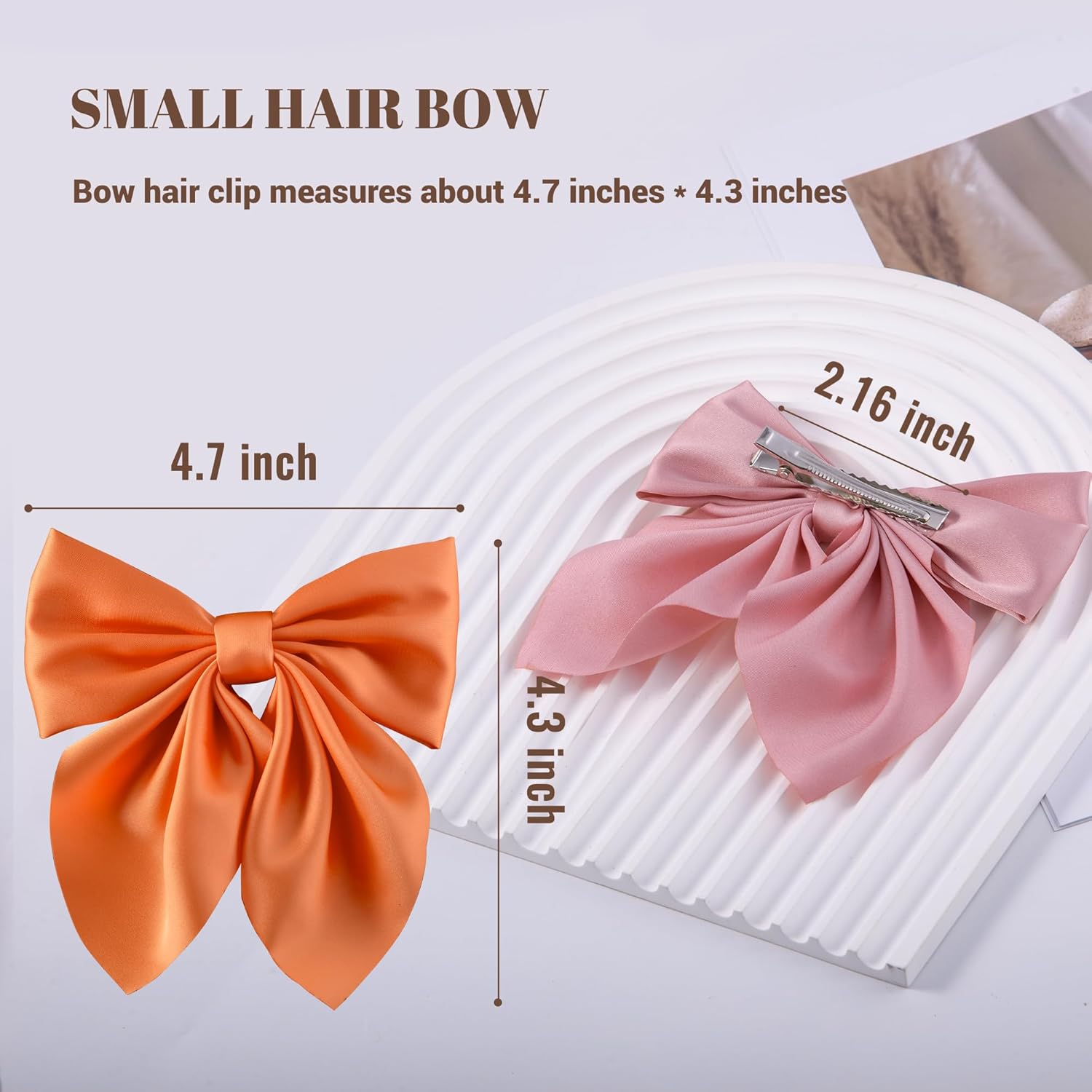 【MATERIAL】Bow hair accessories are made of metal duckbill clips in decorative satin fabric with short tails for softness and durability, ensuring that they retain their shape and beauty after many uses.