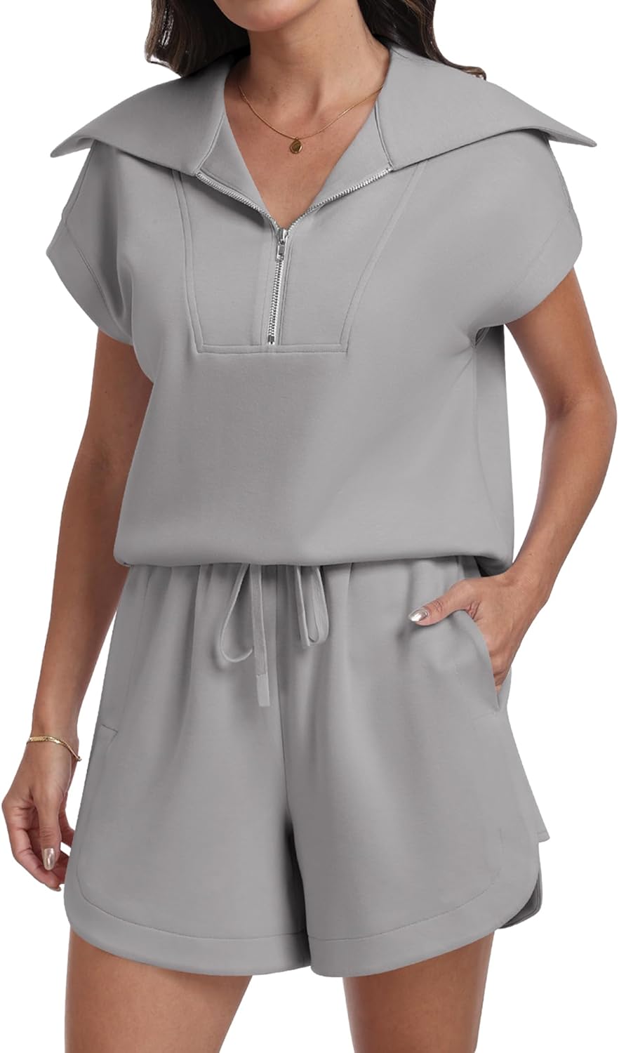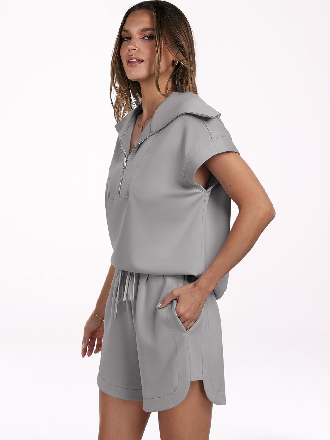 ANRABESS Two Piece Sets for Women Summer Half Zip Short Set Sweatsuit 2 Piece Outfits Sweat Lounge Sets Tracksuit