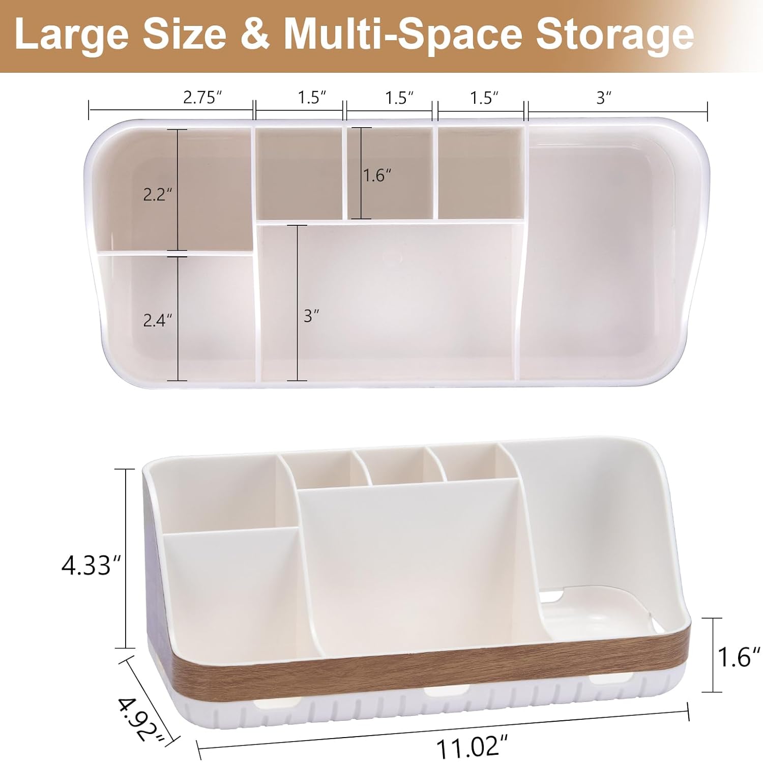 SUPERIOR ORGANIZER: The wood grain bathroom countertop organizer is designed with 2 tiers and 7 slots. The tiered divider design can separately organize bathroom accessories such as electric toothbrush, toothpaste, cosmetics, mouthwash, razor and floss