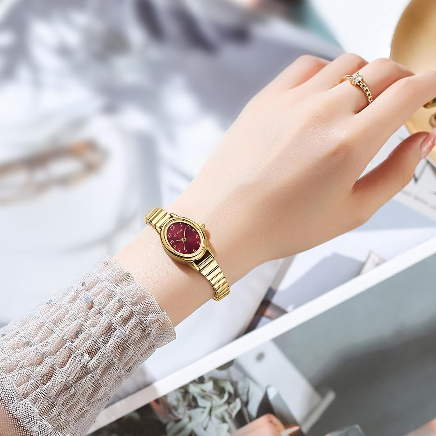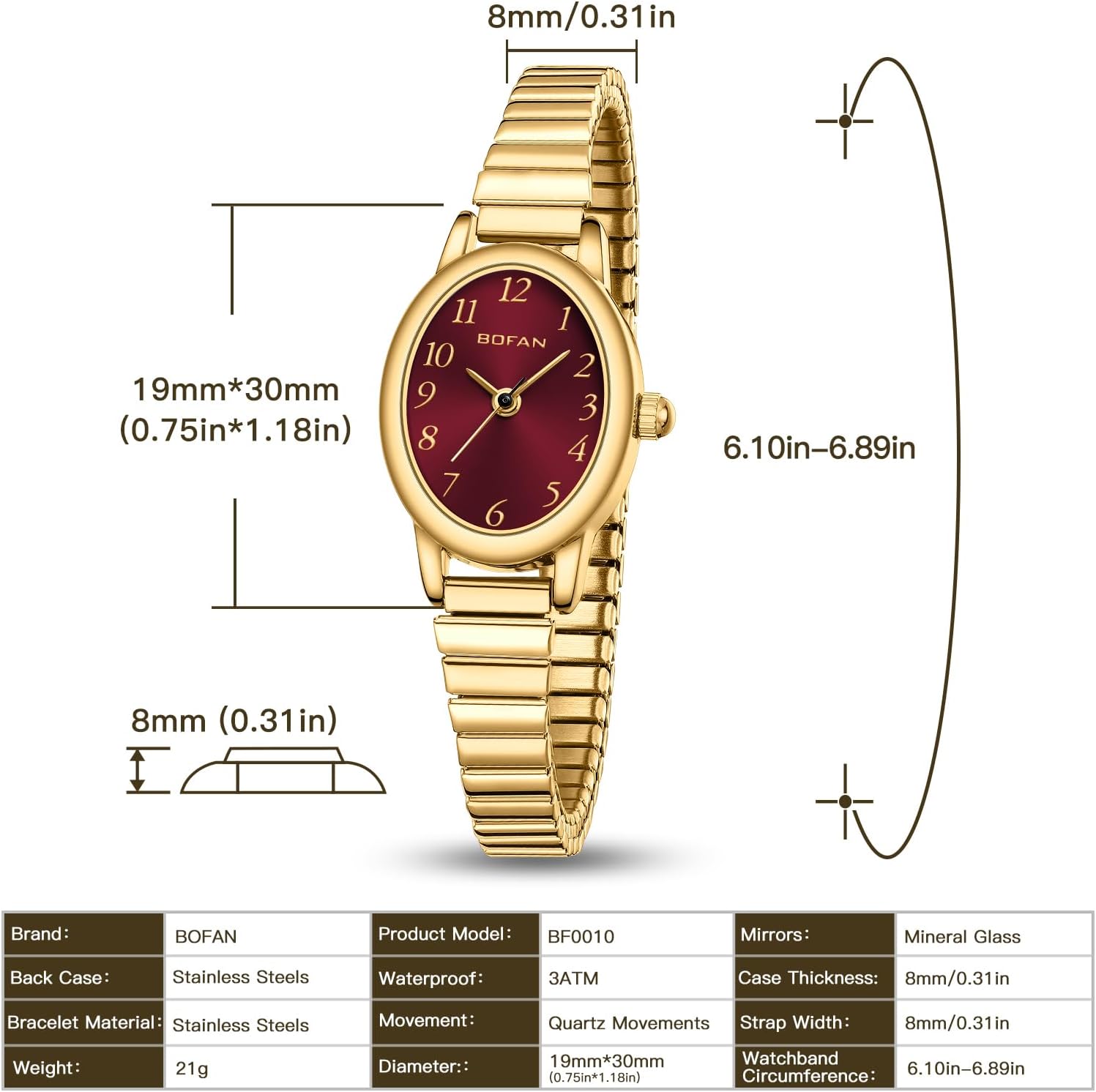 BOFAN Small Gold Watches for Women Easy Read Ladies Quartz Wrist Watch with Stainless Steel Expansion Band,Waterproof.
