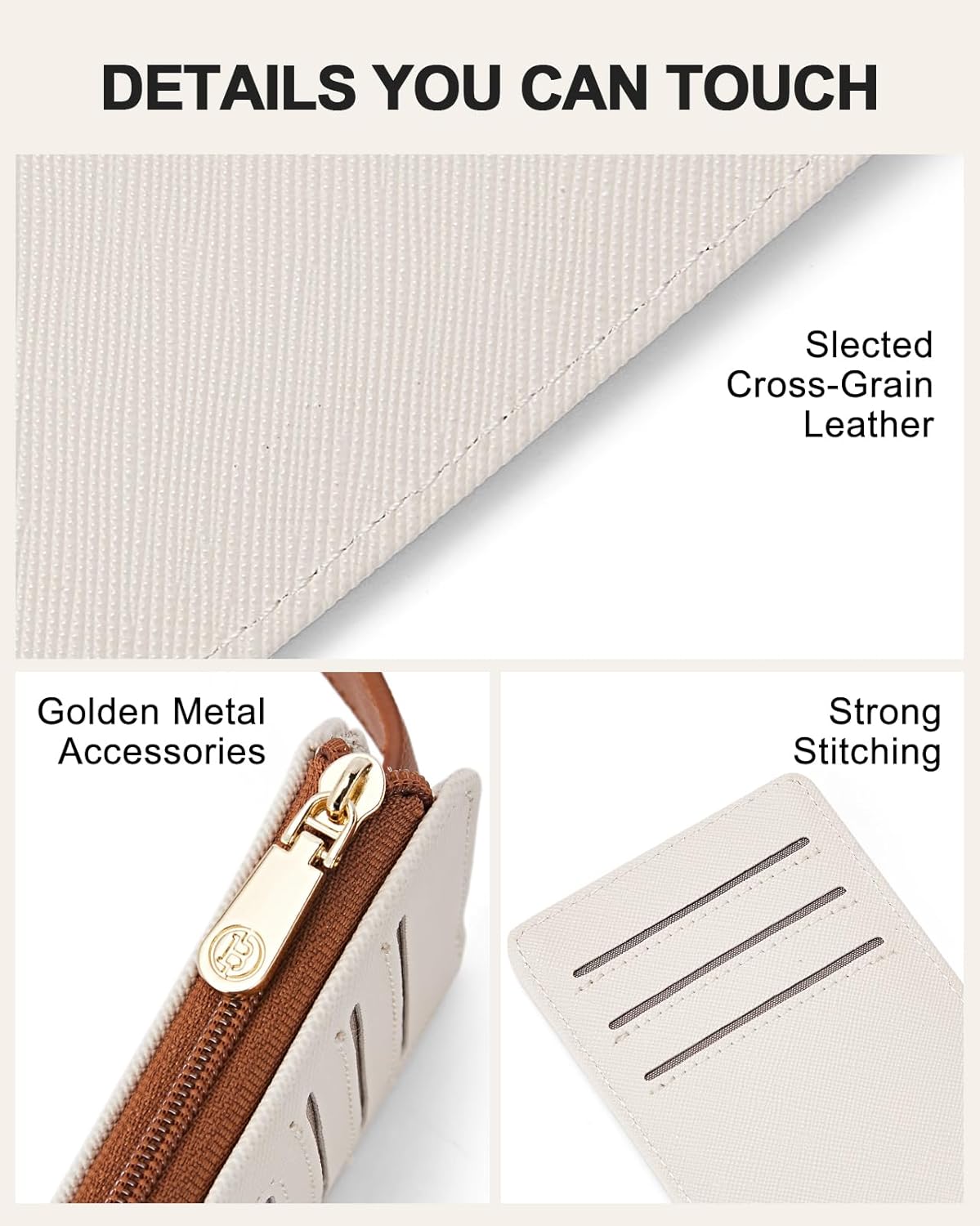 HIGH QUALITY LEATHER&WELL DESIGNED: Womens wallet is made of high-quality cross-grain leather. Good texture, durable, and not easy to crack. Slim wallet with golden metal fittings and sturdy stitching, sturdy and longevity. Smooth zipper and just the right size slot for easy access to your stuff. Rfid credit card holder has a button closure design opens easily but doesn’t just pop open, even when the wallet was filled enough to gap.