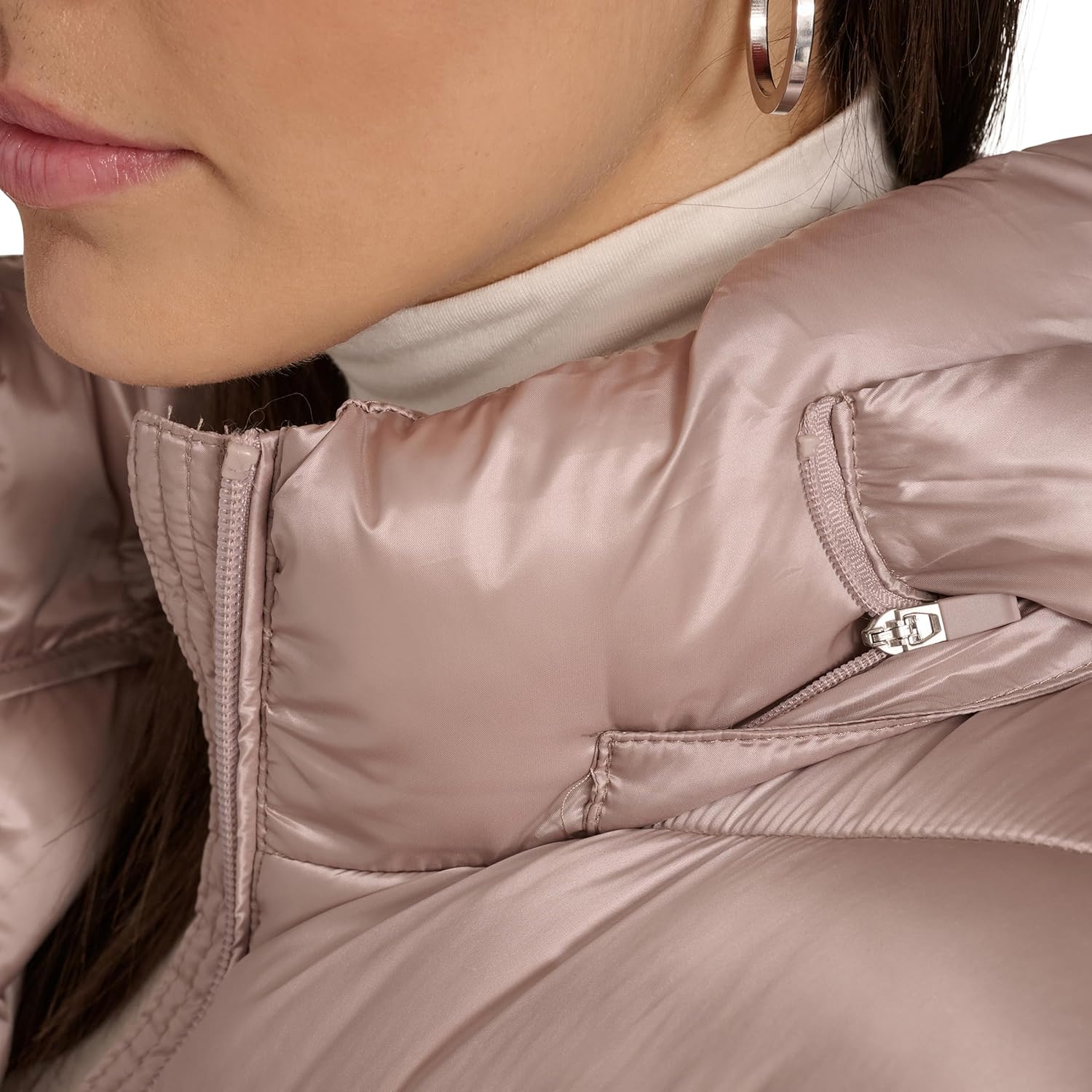 This Calvin Klein Women’s Outerwear Jacket is a Light-Weight Hooded Puffer Coat.