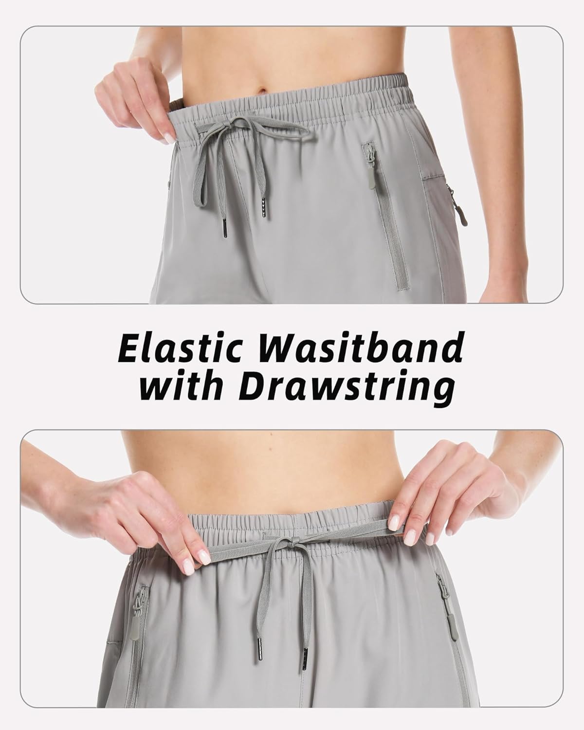 BONOTIE Lightweight Athletic Pants for Women, Breathable and Quick Dry Fabric; 6 Large Zipper Pockets; Elastic Waistband with Drawstring; Perfect for hiking, running, athletic, walking any occasion.