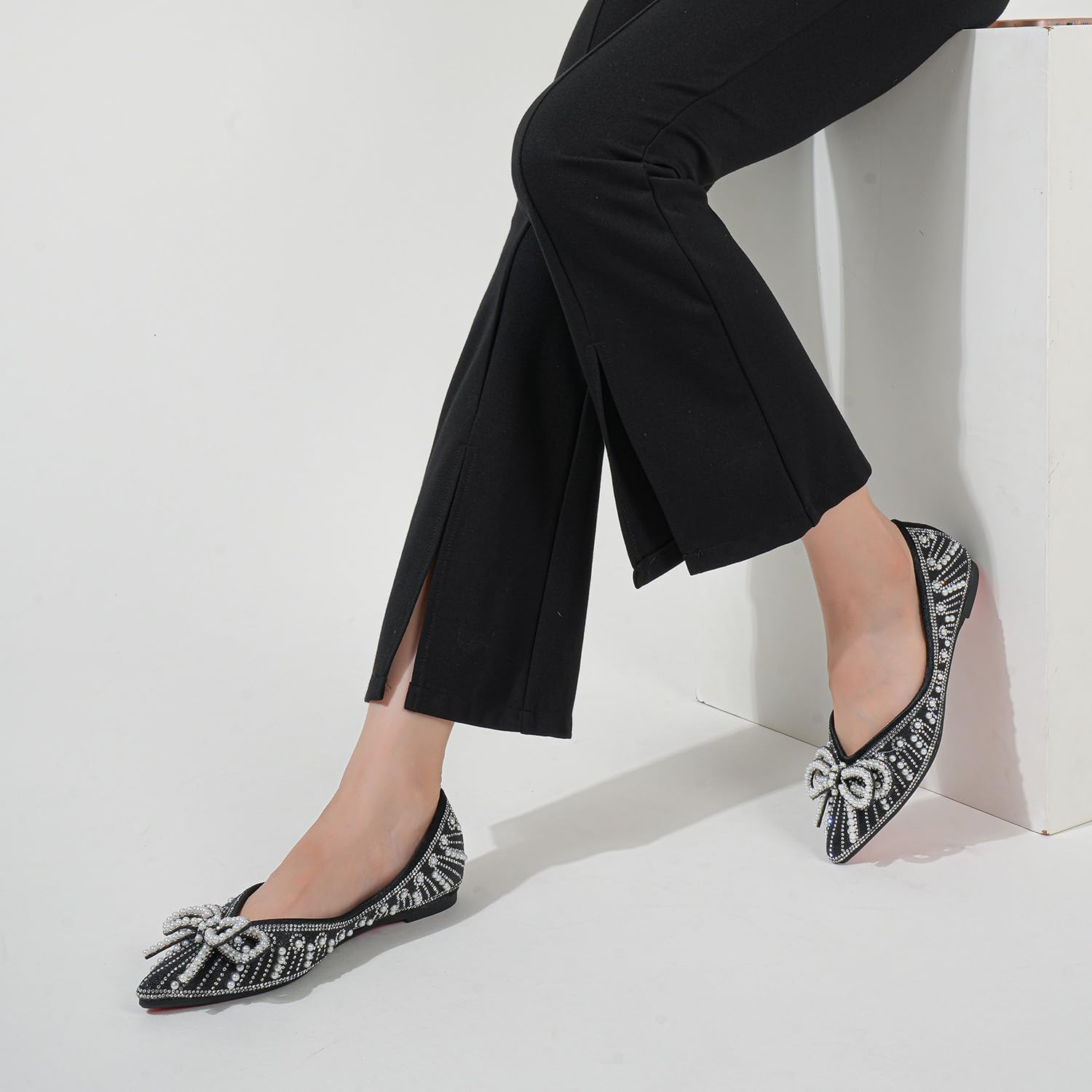 Flats Shoes Women Rhinestone Wedding Flats Pointed Toe Ballet Flat Shoe Low Heel Dress Shoes Sparkly Flats for Women