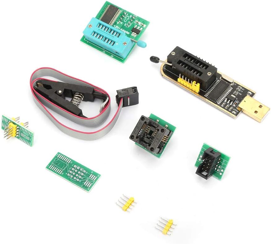 FTVOGUE CH341A USB Programmer + SOP8 Test Clip + 1.8V Adapter + SOP8 to DIP8 Converter Module USB Universual Programmer, Connector