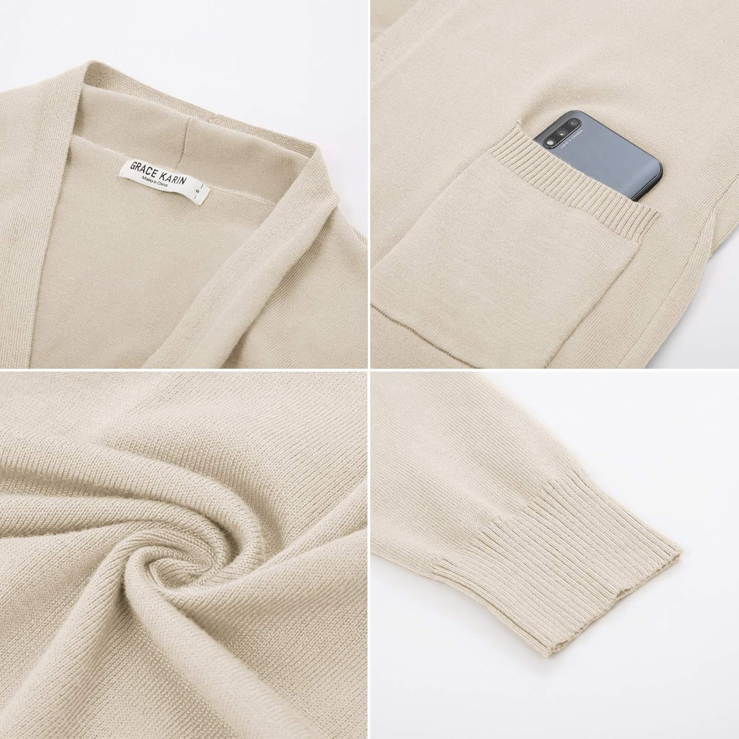 GRACE KARIN Essential Solid Open Front Maxi Long Knitted Cardigan Sweater for Women