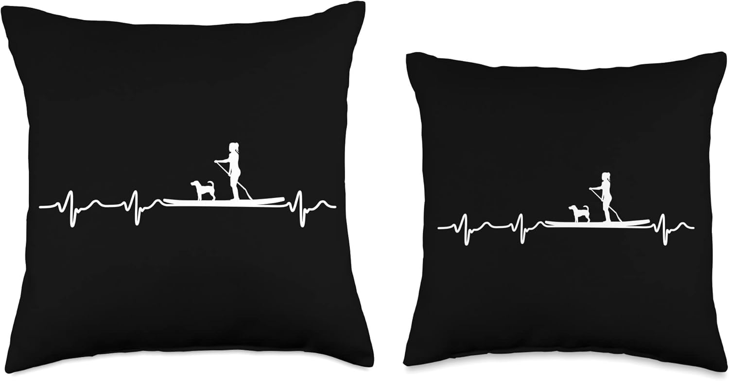 Heartbeat SUP and Pups Stand up paddlers and Dog Friends Throw Pillow, 16×16, Multicolor