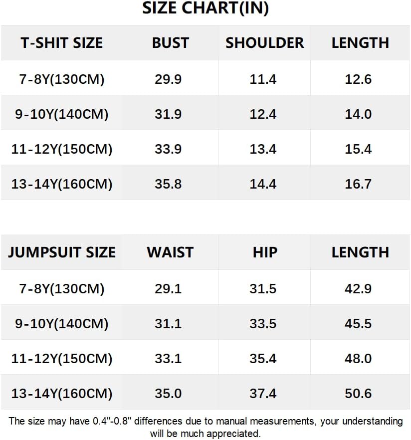 Hilinker Girl’s Casual Two-Piece Summer Outfit – Crew Neck T-shirt with Loose Cargo Jumpsuit.