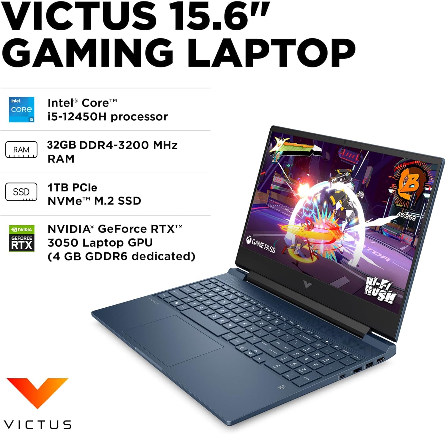 HP Victus 15 Gaming Laptop (NVIDIA RTX 3050 4GB, 15.6″ FHD 144Hz IPS, Intel 12th Gen i5-12450H, 32GB DDR4 RAM, 1TB SSD) Backlit Keyboard, Wi-Fi 6, Ethernet, HD Webcam, Bluetooth 5.3, Win 11 Home, Blue