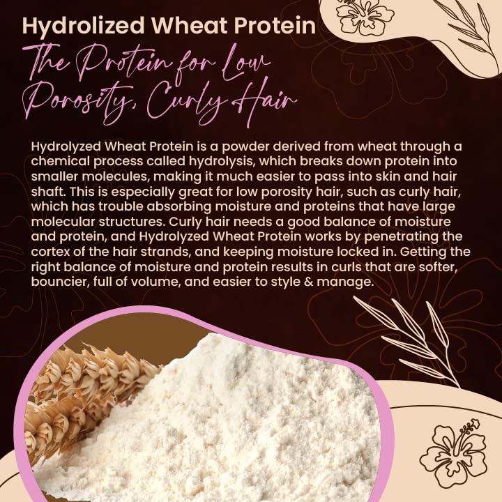 Hydrolyzed Wheat Protein: Like silk protein, hydrolyzed wheat protein’s permeability is excellent for low porosity hair. Its ability to lock in moisture is unprecedented, allowing it to quickly hydrate curls.