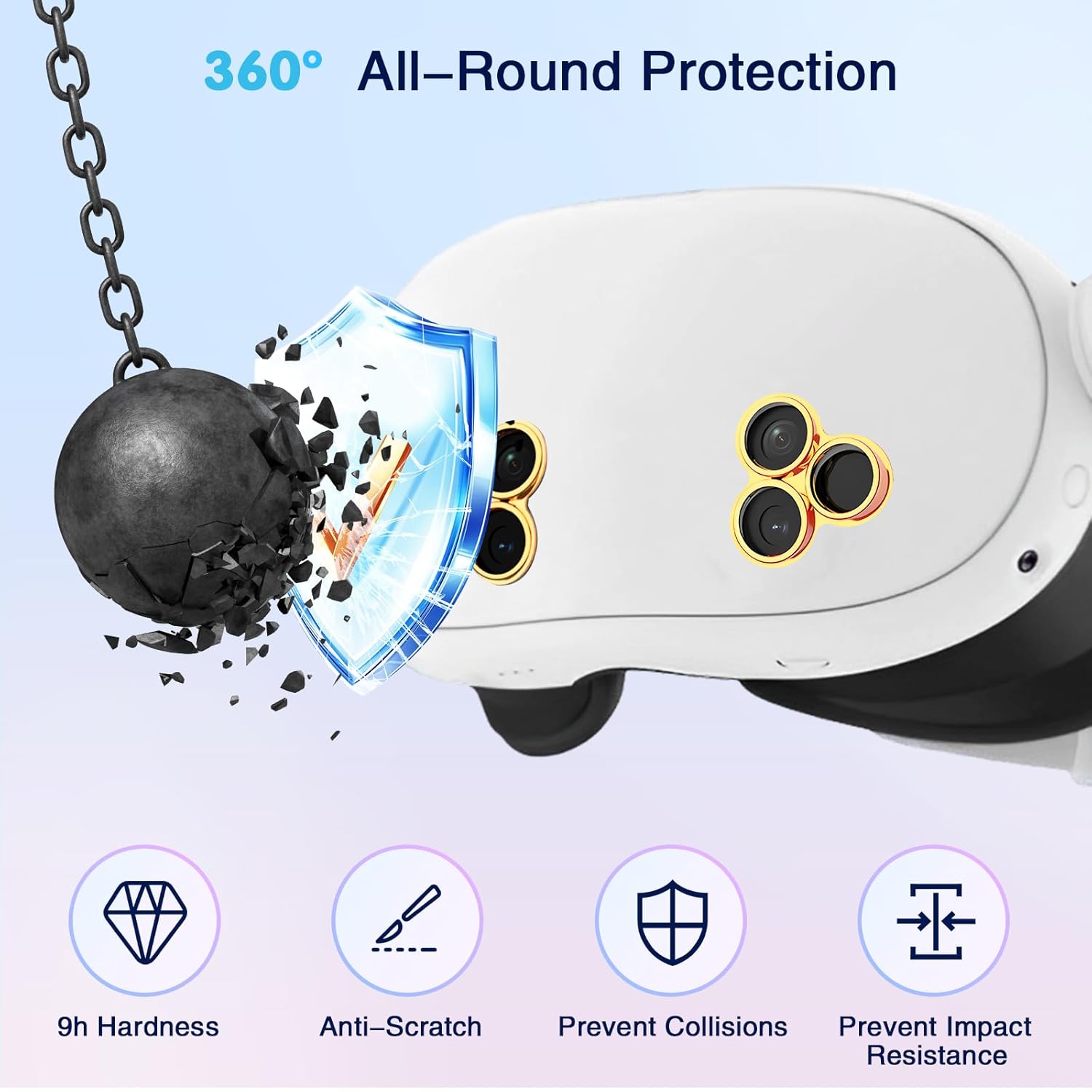 【Strong Protection for Quest 3s Lens】Mede of alloy frame and 9H hardness tempered glass, our lens protector for oculus quest 3S accessories can effectively prevent scratches, and collisions and have strong wear resistance and impact resistance, ensuring the long-term use of the camera lens protector. Perfect protect for vr headset oculus quest 3s lens