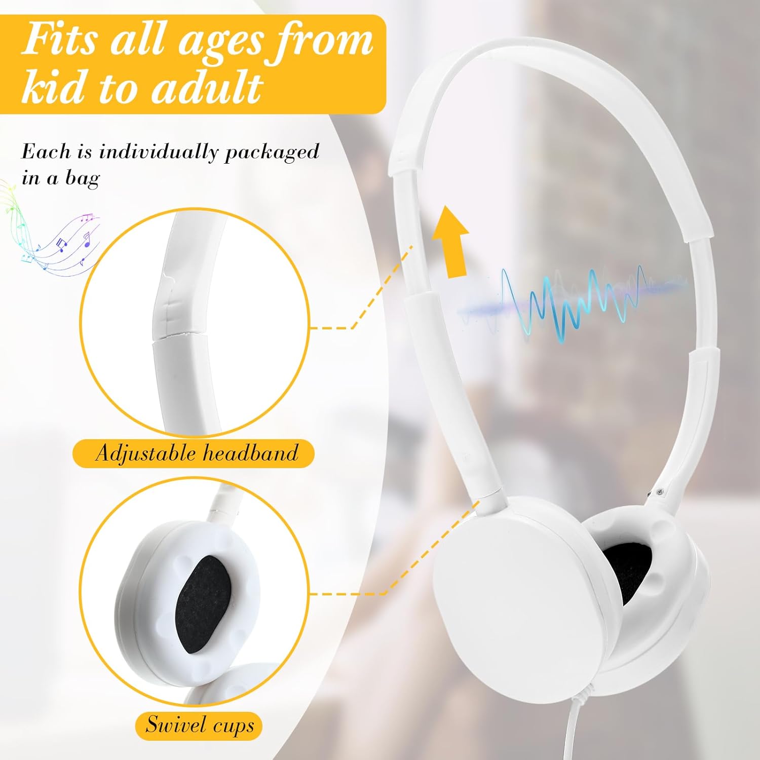 Class sets of headphones for students are reliable and practical, each kids headphone individually packaged school headphone for classrooms, planes, hospitals, students, children and adults.