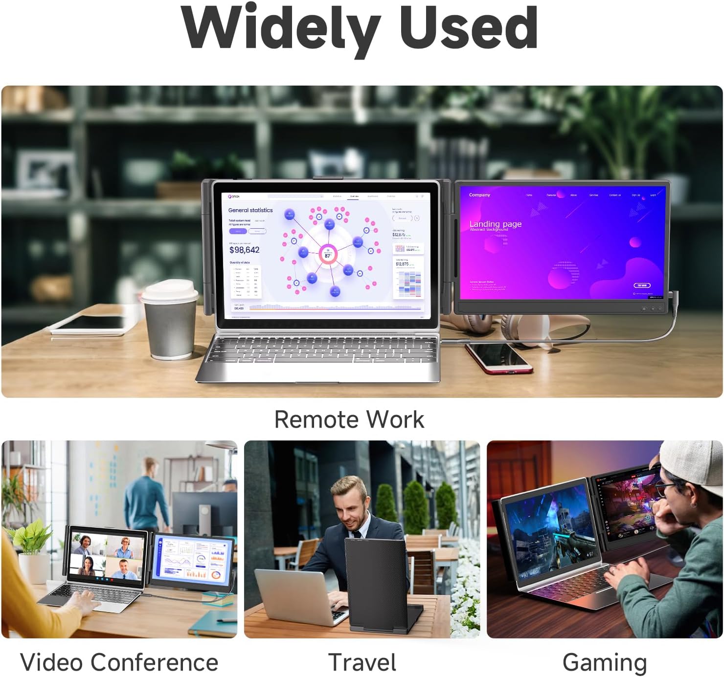 Improve Efficiency with Portable Laptop Monitor: The portable monitor for laptop enables you to process and organize more tasks with one extra screen to increase your efficiency by up to 200%. The game-changer travel monitor for laptop allows you to open multiple windows simultaneously for work, video meeting, data analysis, gaming or movie watching. The portable screen for laptop is a must have for remote and travel workers like IT professionals, stock traders, programmers