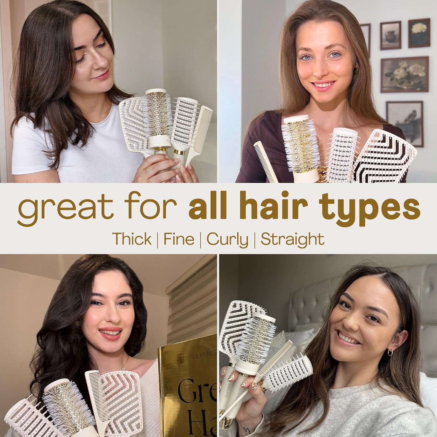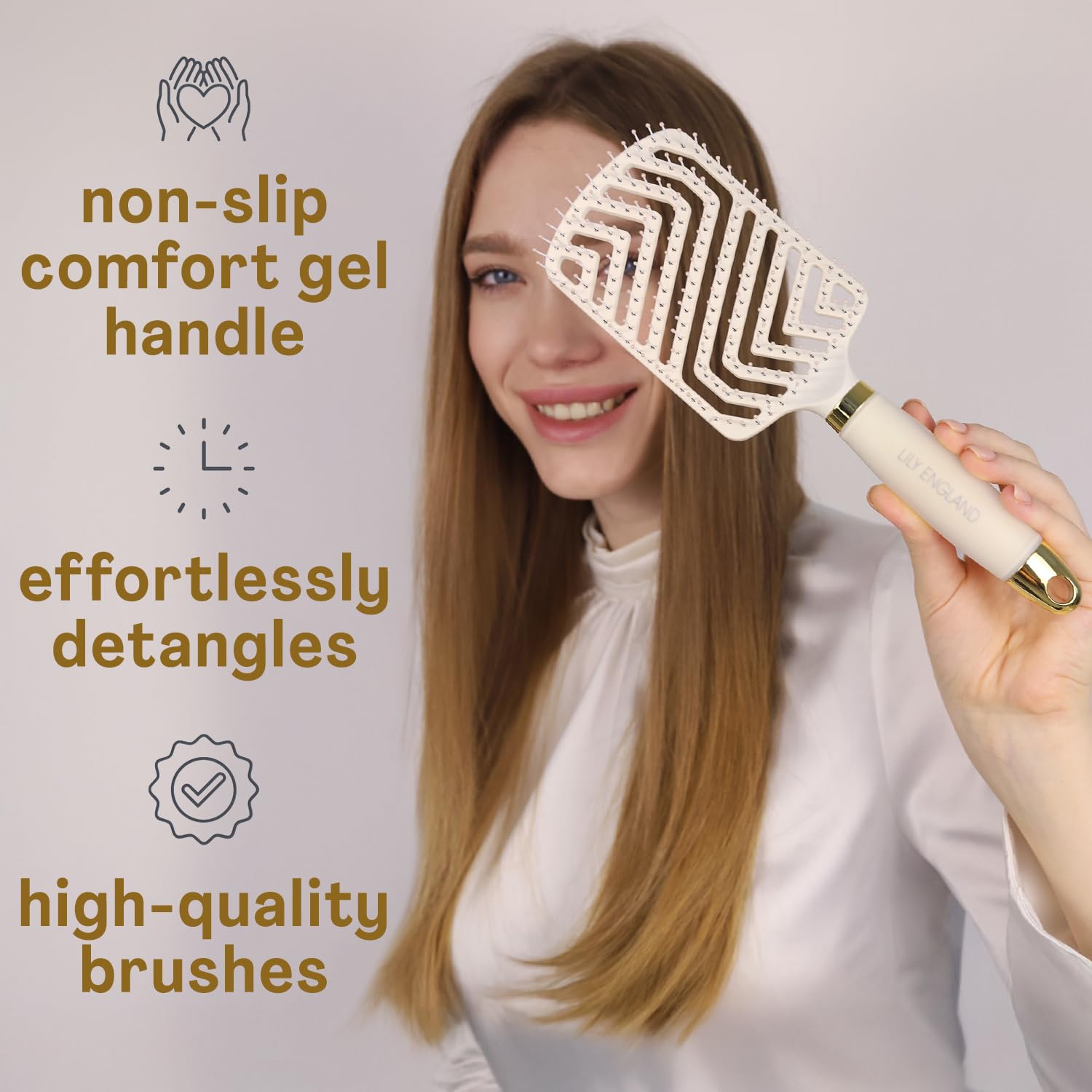 Lily England Mom Birthday Gift Set – 7-Piece Professional Styling Collection – Premium Birthday Gift for Mom – Elegant Gift Set for All Hair Types – Beige & Gold