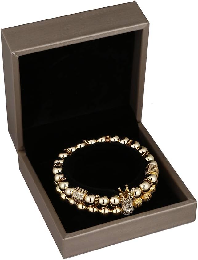 Be the first to review “Men Women Bracelets Luxury Crown Copper Bracelets with 8mm Micro Pave Cubic Zirconia Beads (Gold)”