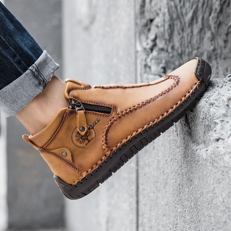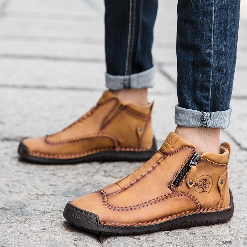 men’s casual outdoor short boots – hand sewn classic boots with fashionable side zipper decoration, perfect for outdoor enthusiasts and activities