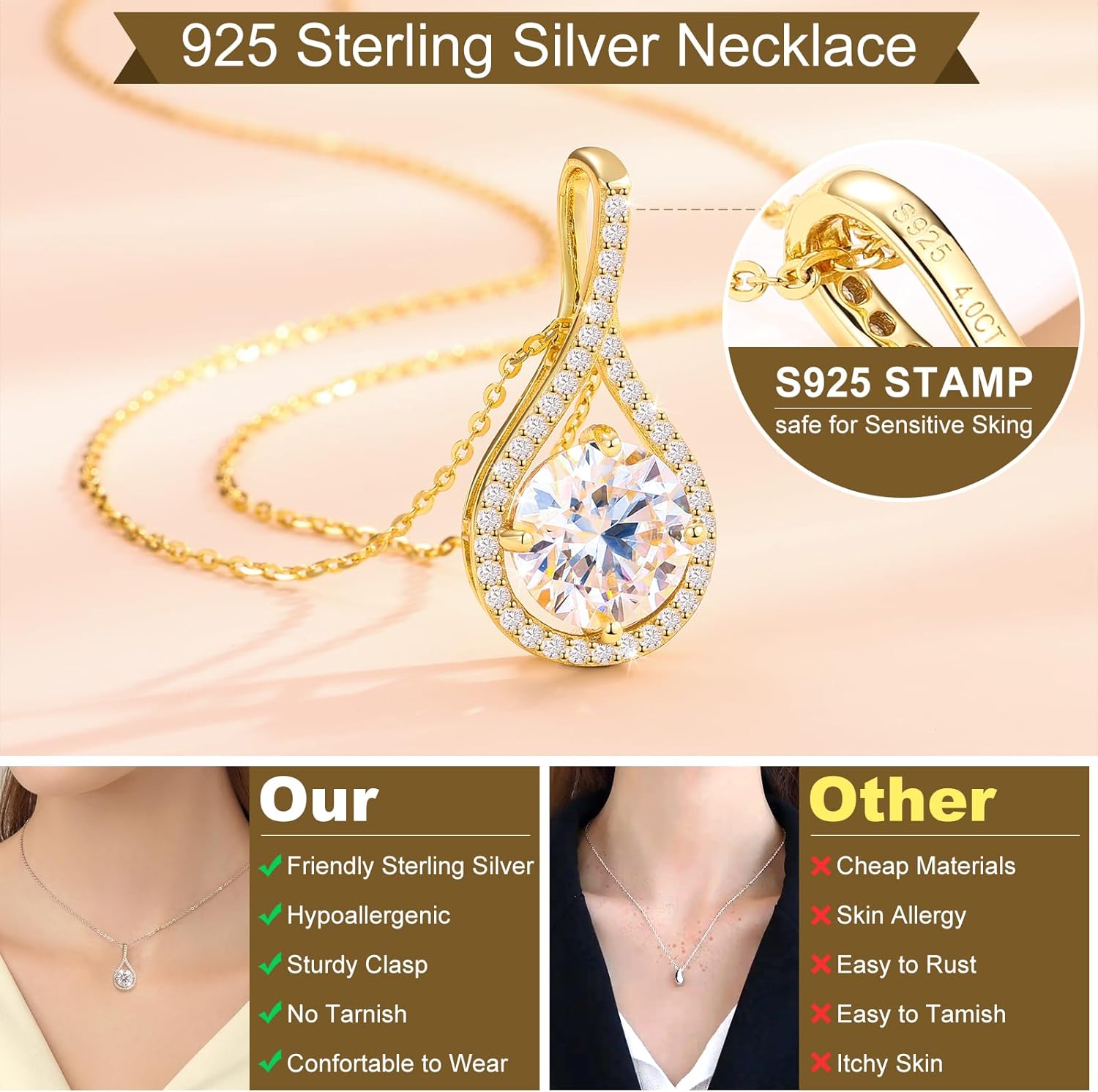 Moissanite Diamond Necklace Gift for Women, 925 Sterling Silver 18K White/Yellow Gold Plated 1CT-4CT Lab Created Diamond Pendant for Her, Anniversary Day Valentines Gift, Birthday, Wedding – to My Wife, Girlfriend, Mom, 18+2 inches Necklace with GRA Certificate of Authenticity