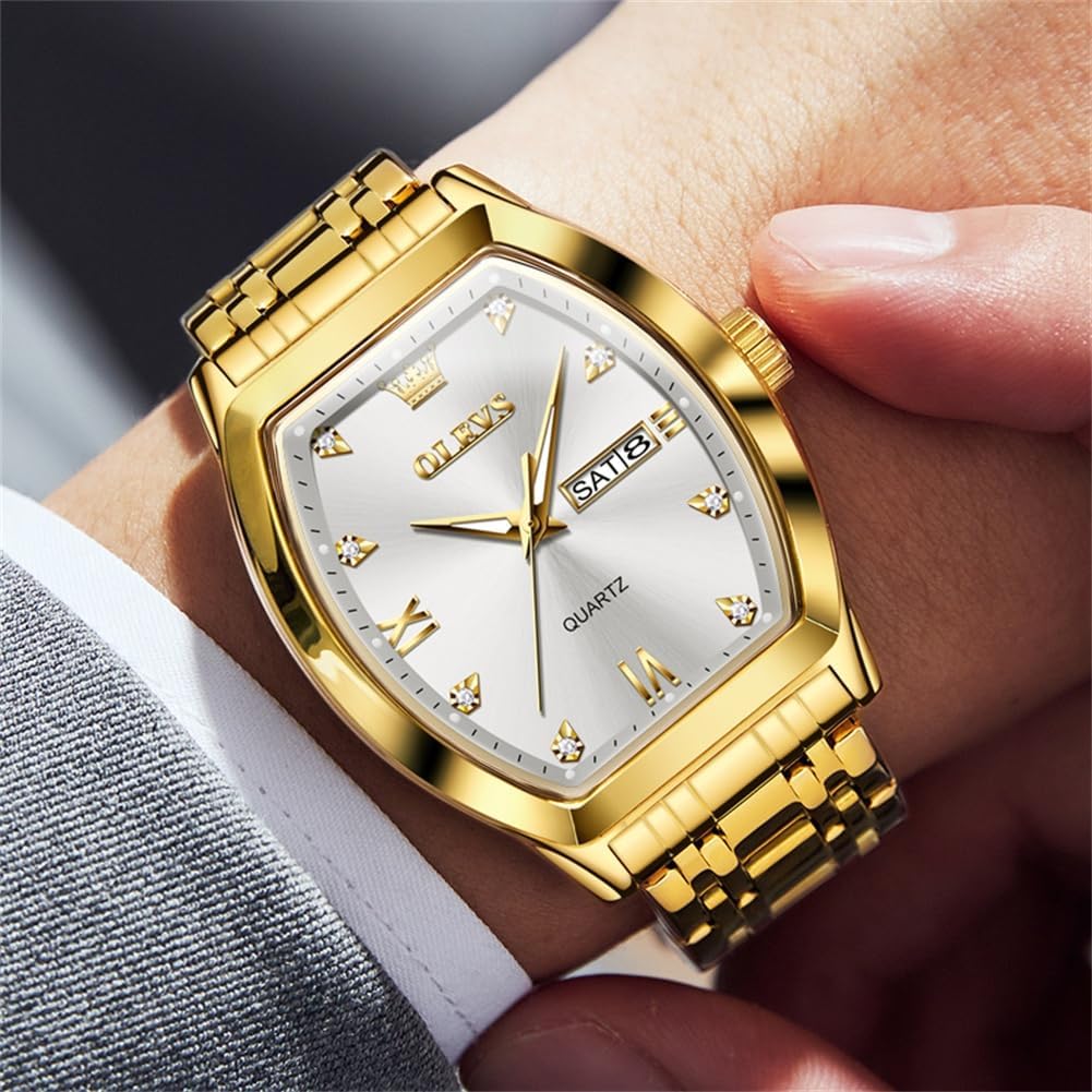 OLEVS Square Watches for Men Diamond Analog Quartz Stainless Steel Big Face Business Luxury Dress Mens Wrist Watch with Date Waterproof Luminous