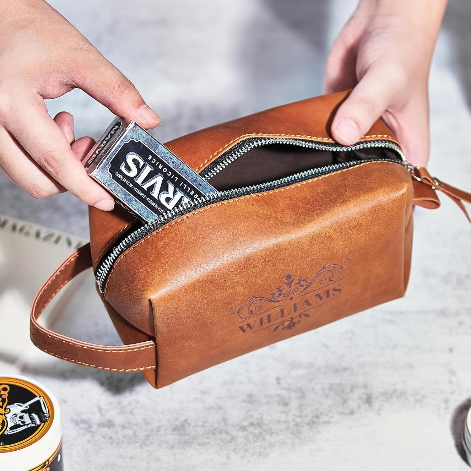 【Unique Customization】The leather toiletry bag comes in 3 colors and 3 sizes. We provide personalization and engraving the style and name of your choice. It will become your unique personalized toiletry bag.