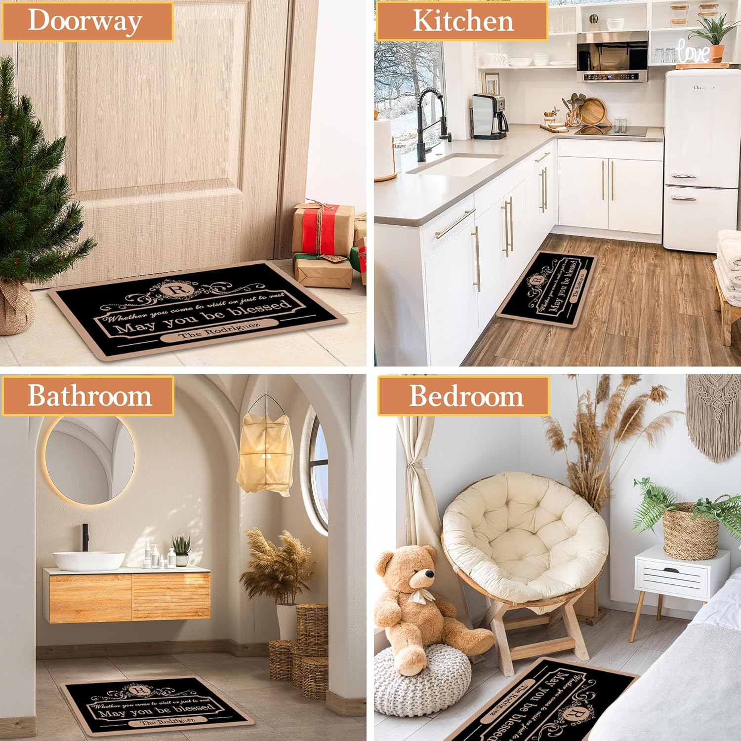 🏠Personalized Your Doormat: Click the “Customize Now” button, choose the design you like, enter your text, and our designer will customize a unique welcome doormat for you.
