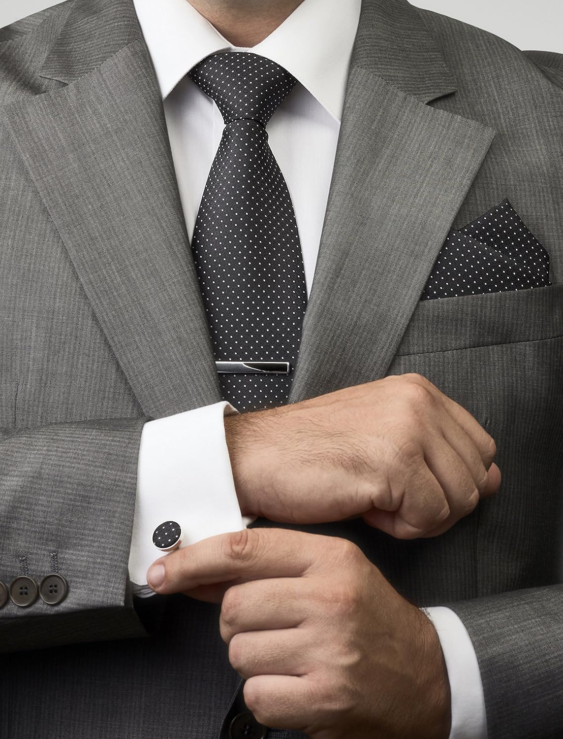 Give a classy touch to all your tuxedo events with an ALL-INCLUSIVE SET, as the 3 men’s neckties + 3 pocket squares pack is complemented with the SHINY CUFFLINKS & the 4 luxurious TIE CLIPS that accompany your set, offering you much more than any similar product on the market!