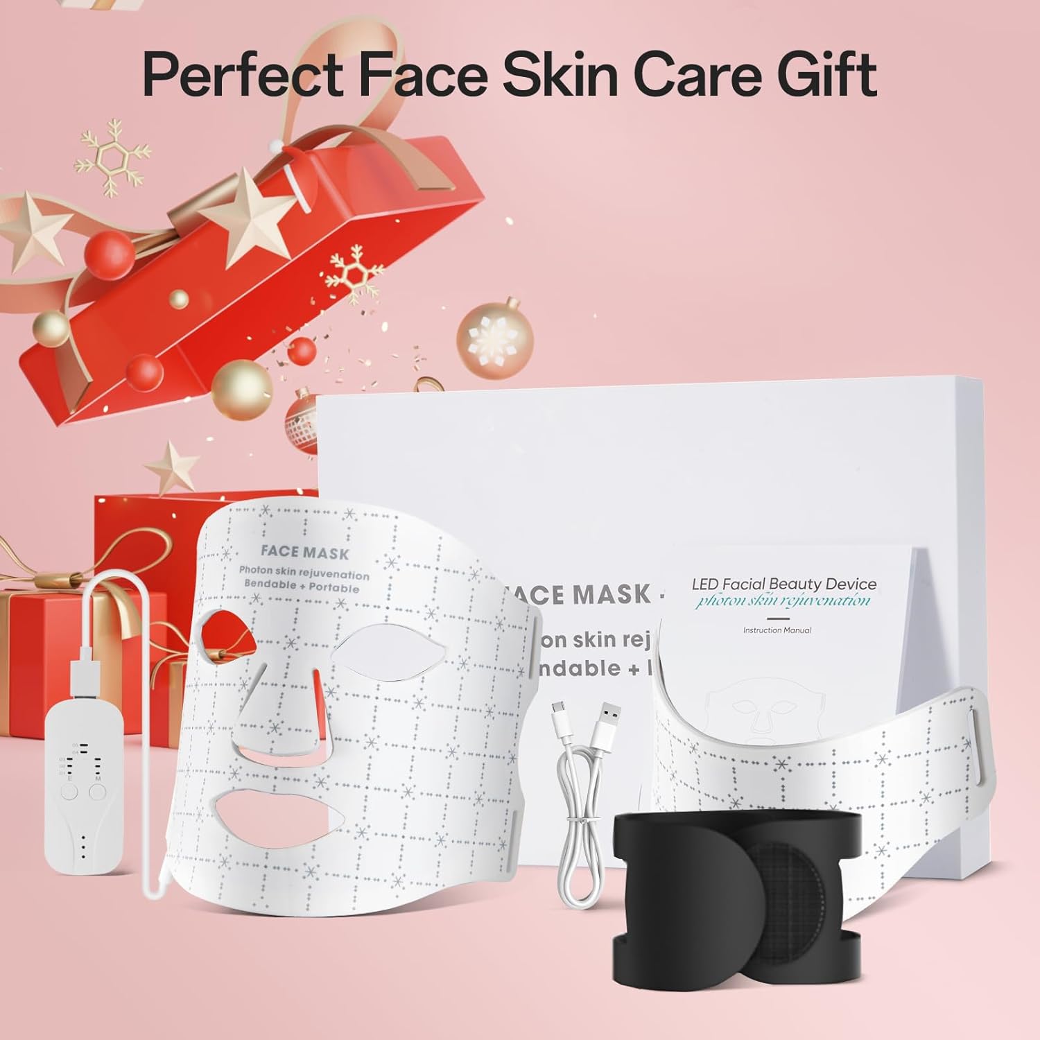 Red Light Mask for Face and Neck – Facial Skin Care Device, Portable, Lightweight, Rechargeable and Ergonomic Design for Home (White)