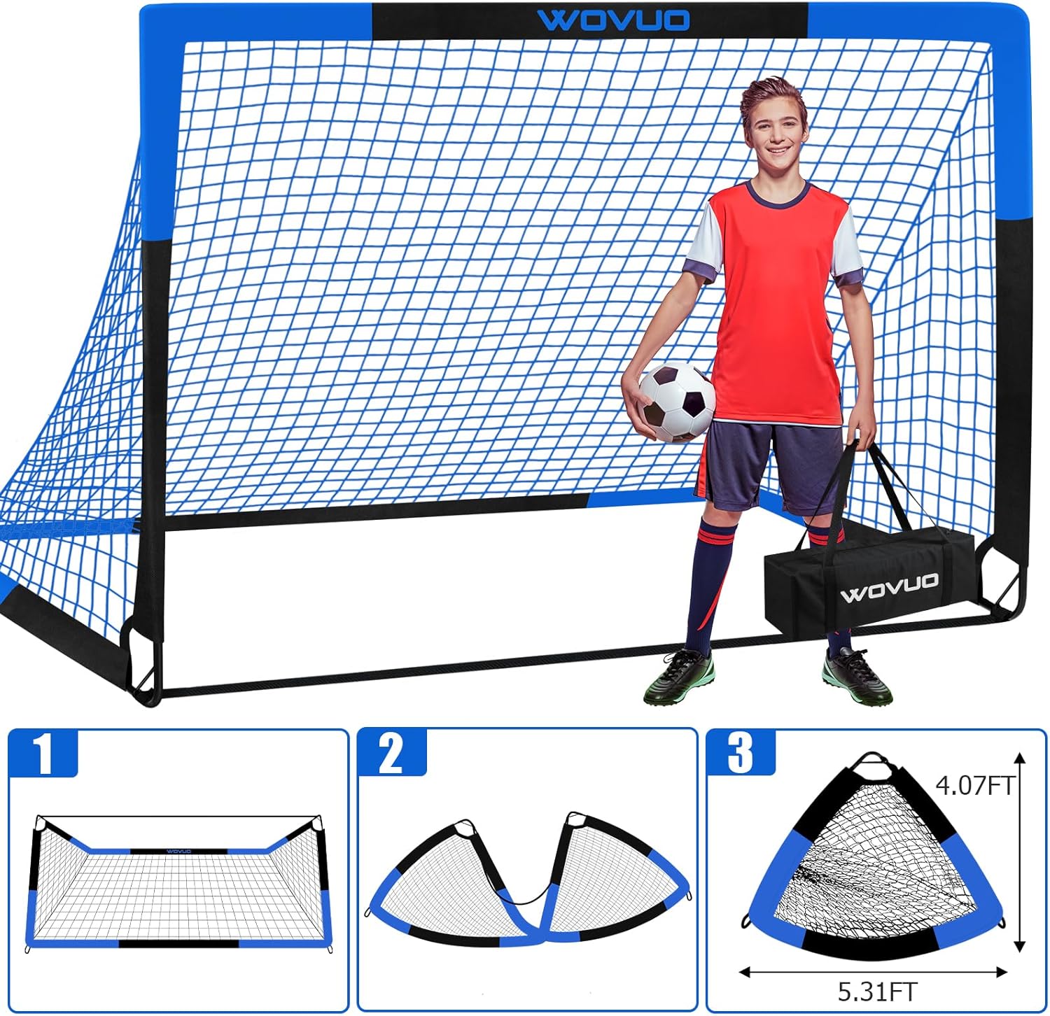 *8 U-shaped metal ground nails to secure the goals added stability during use.THE WOVUO SOCCER SET INCLUDE: