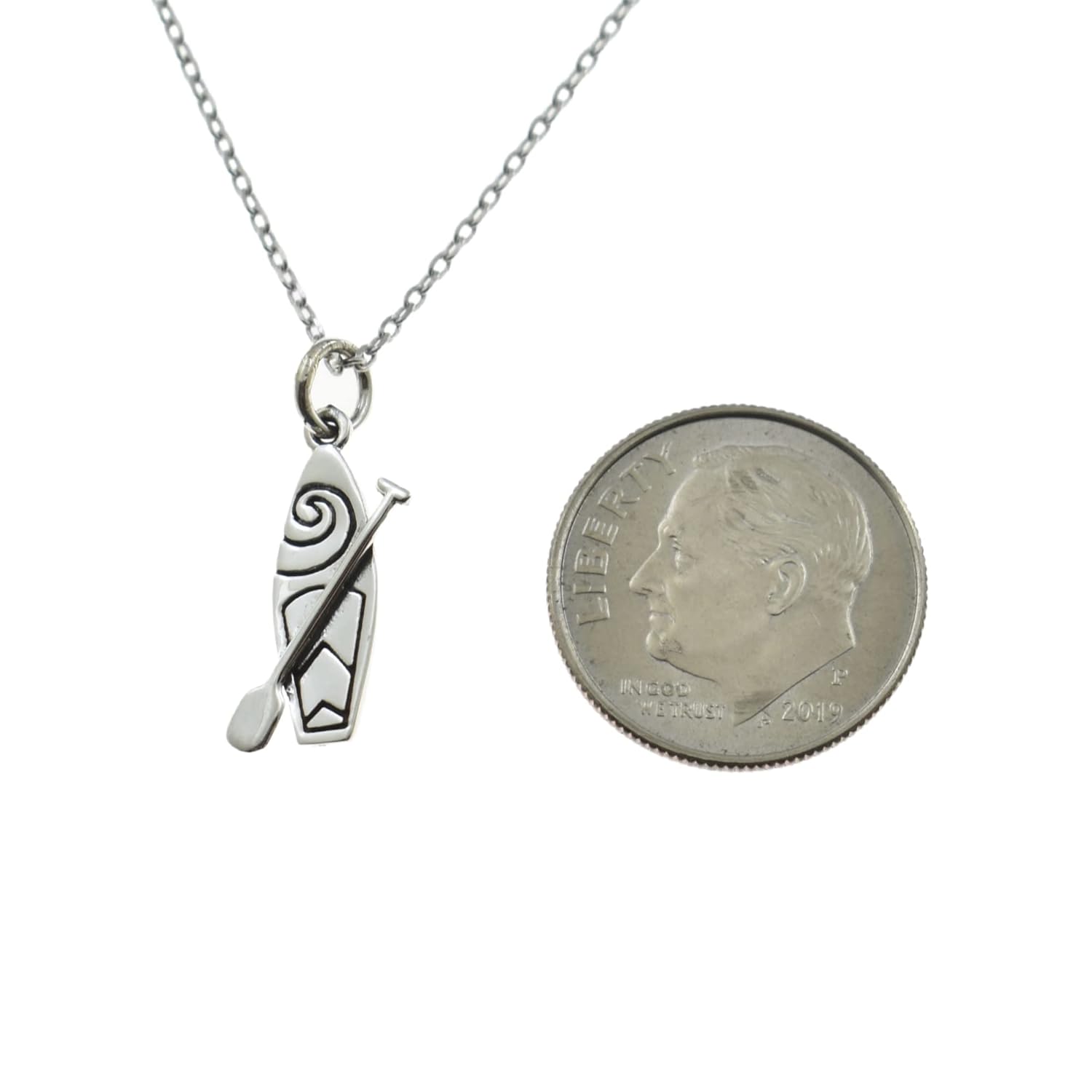 Standup Paddle Board Charm Pendant in Sterling Silver on an 18 Inch Sterling Silver Cable Chain. Paddle Board Necklace. Paddle Board Jewelry