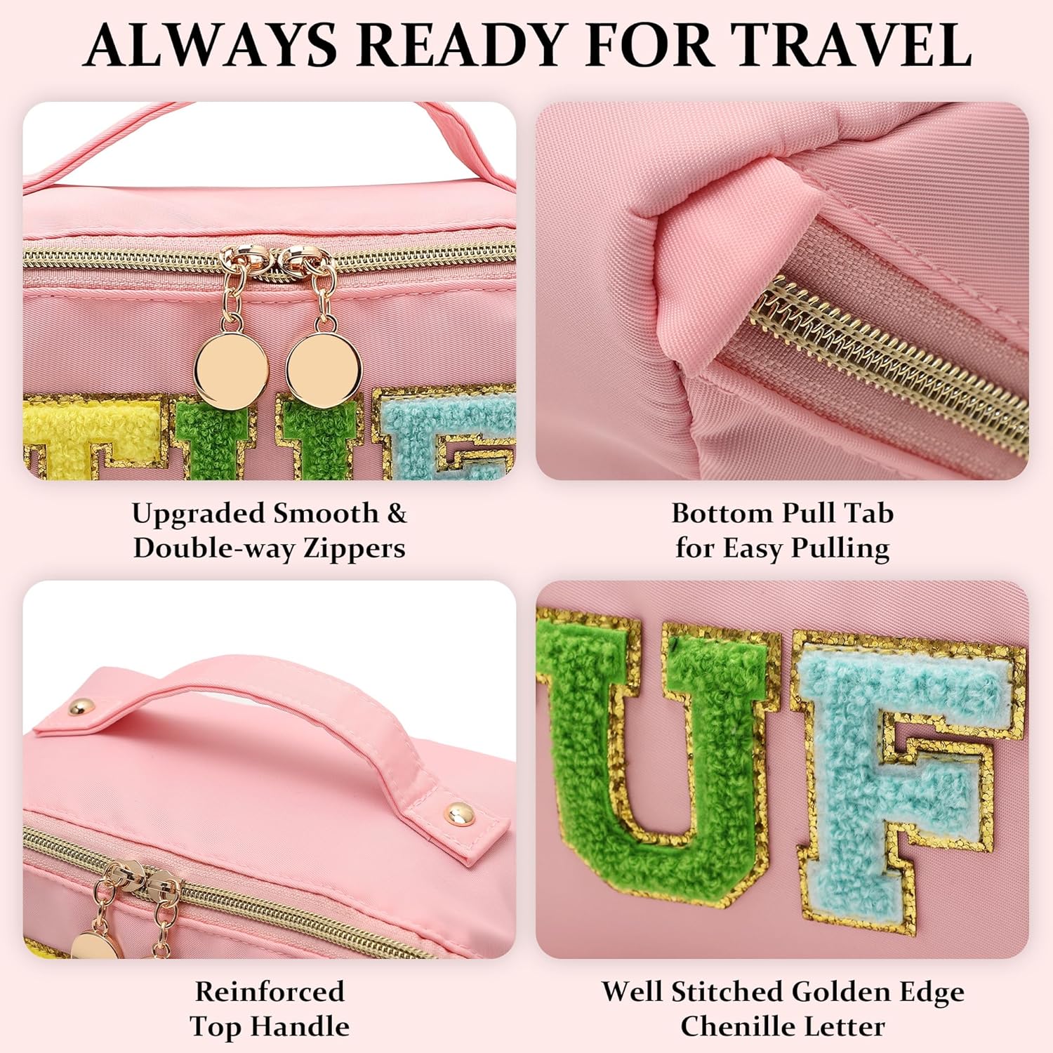 【Multifunctional storage makeup bags】- Lightweight and water-resistant external with anti-wear and anti-scratch interior, portable design suitable for traveling or using it as an everyday, soft material make you able to put it in your suitcase or backpack easily, not only great Chenille Letter bag but also a great toiletry bag or travel bag for men and women. convenient and practically better than brand-name items