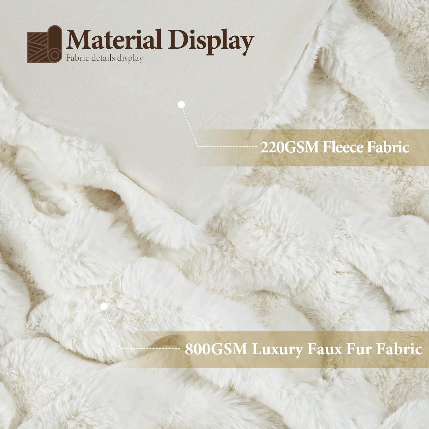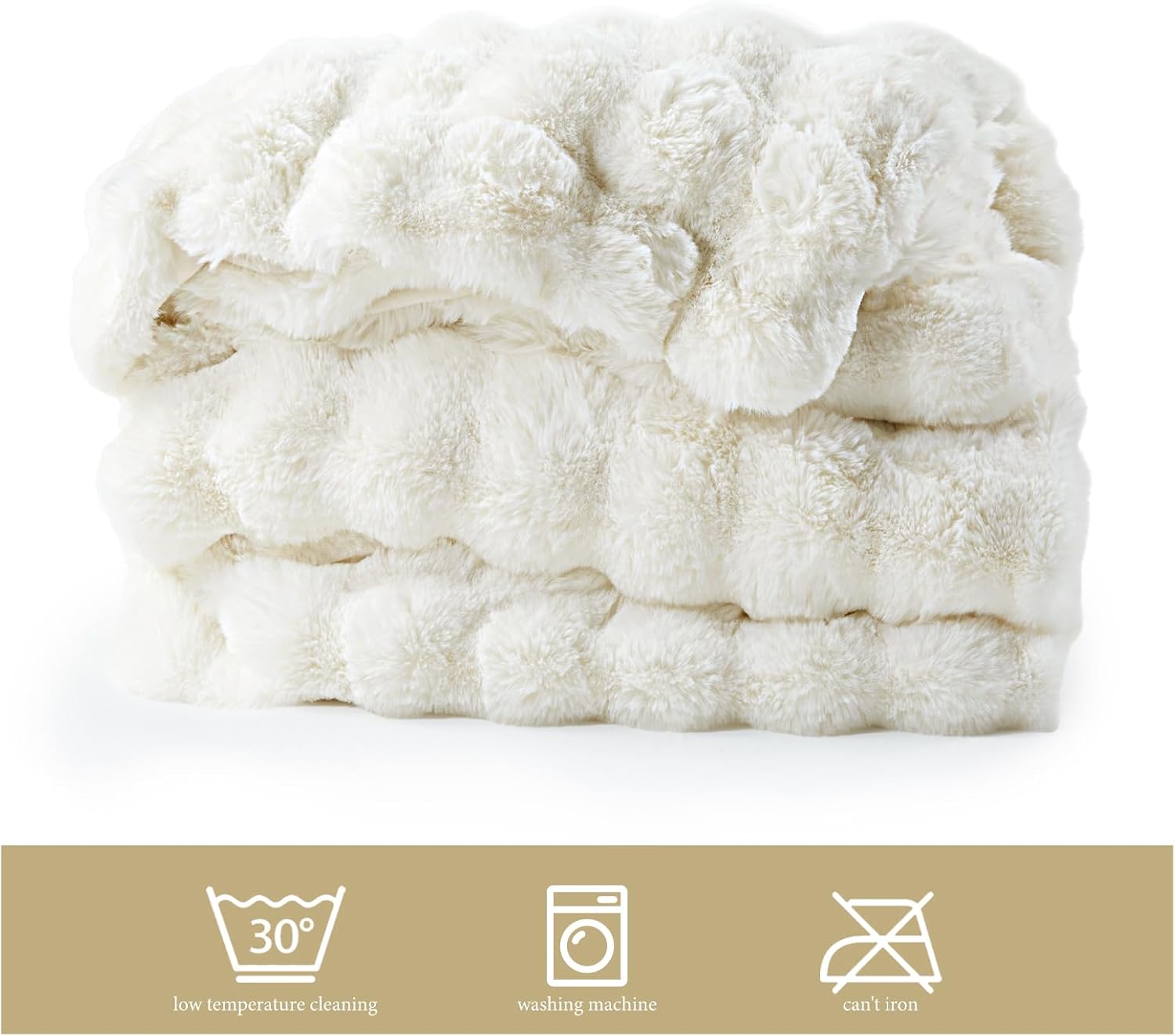 Touchat Luxury 1000GSM Faux Rabbit Fur Throw Blanket, Super Heavy Warm Cozy Beige Cream Blankets for Couch Bed Sofa, Bubble Plush Fuzzy Elegant Soft Reversible Mink Blanket for Living Room Bedroom