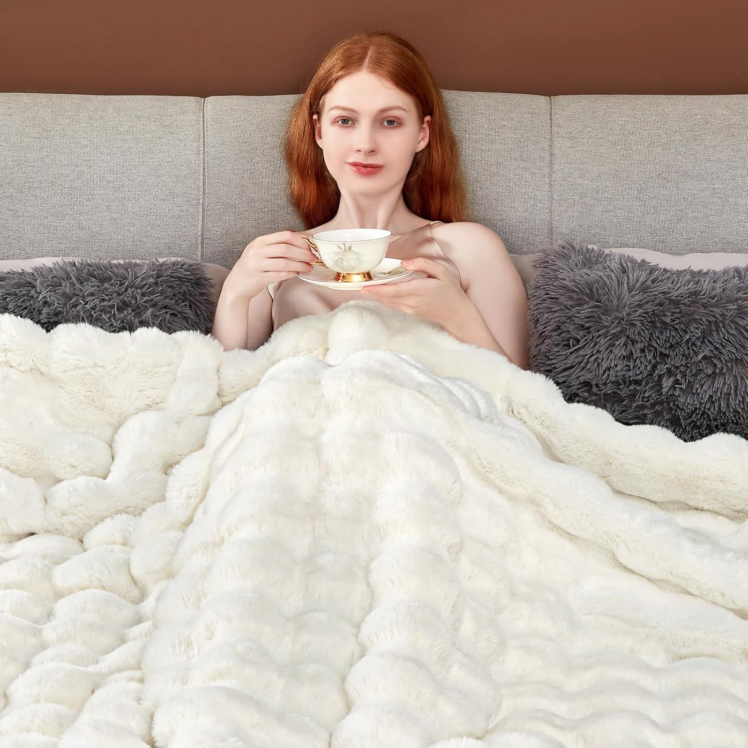 Ideaing Opulence: Our embrace-worthy faux fur throw blanket is an impeccable Idea choice. Its elegance and practicality transcend seasons, making the super soft blanket Excellent for housewarmings, holidays, or personal pampering. Surprise your loved ones with the luxury of warmth. Ideal for conveying thoughtfulness, whether celebrating a new home or festive occasion