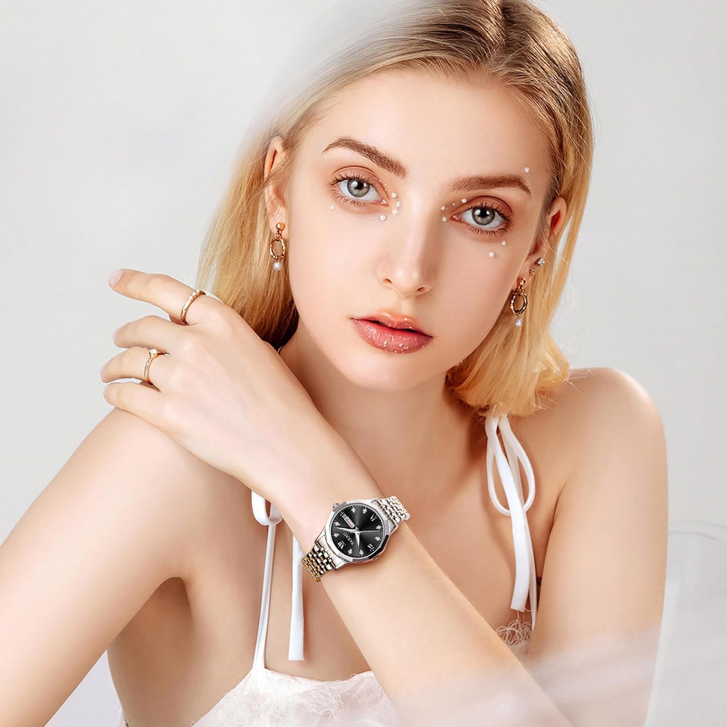 Women’s Watches Roman Numeral Diamond Stainless Steel Waterproof Watches for Women with Date Day Women Wristwatch