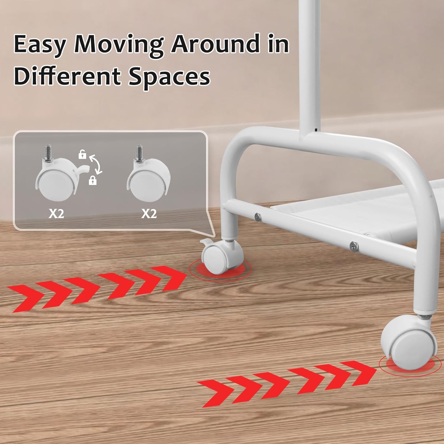 【Easy to Move & Lock】Equipped with 4 swivel casters, the children’s coat rack can be easily moved to any room. Additionally, two of the wheels can be locked to keep the rack stable and secure.